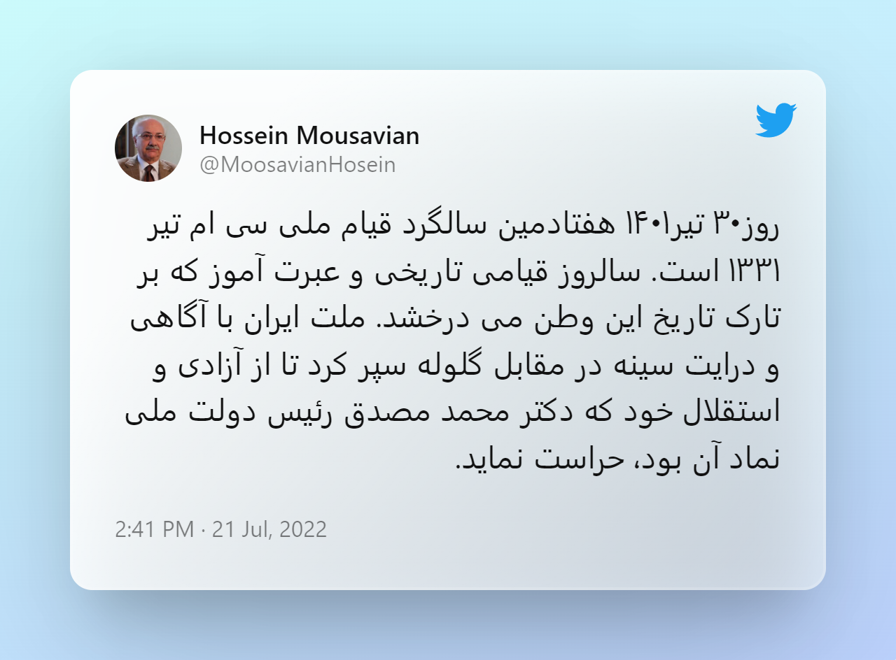 : Tweet by Hossein Mousavian (13)